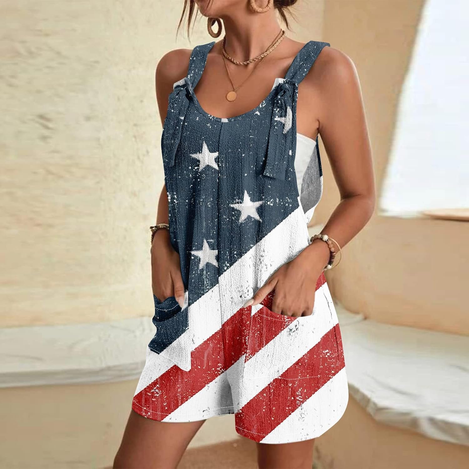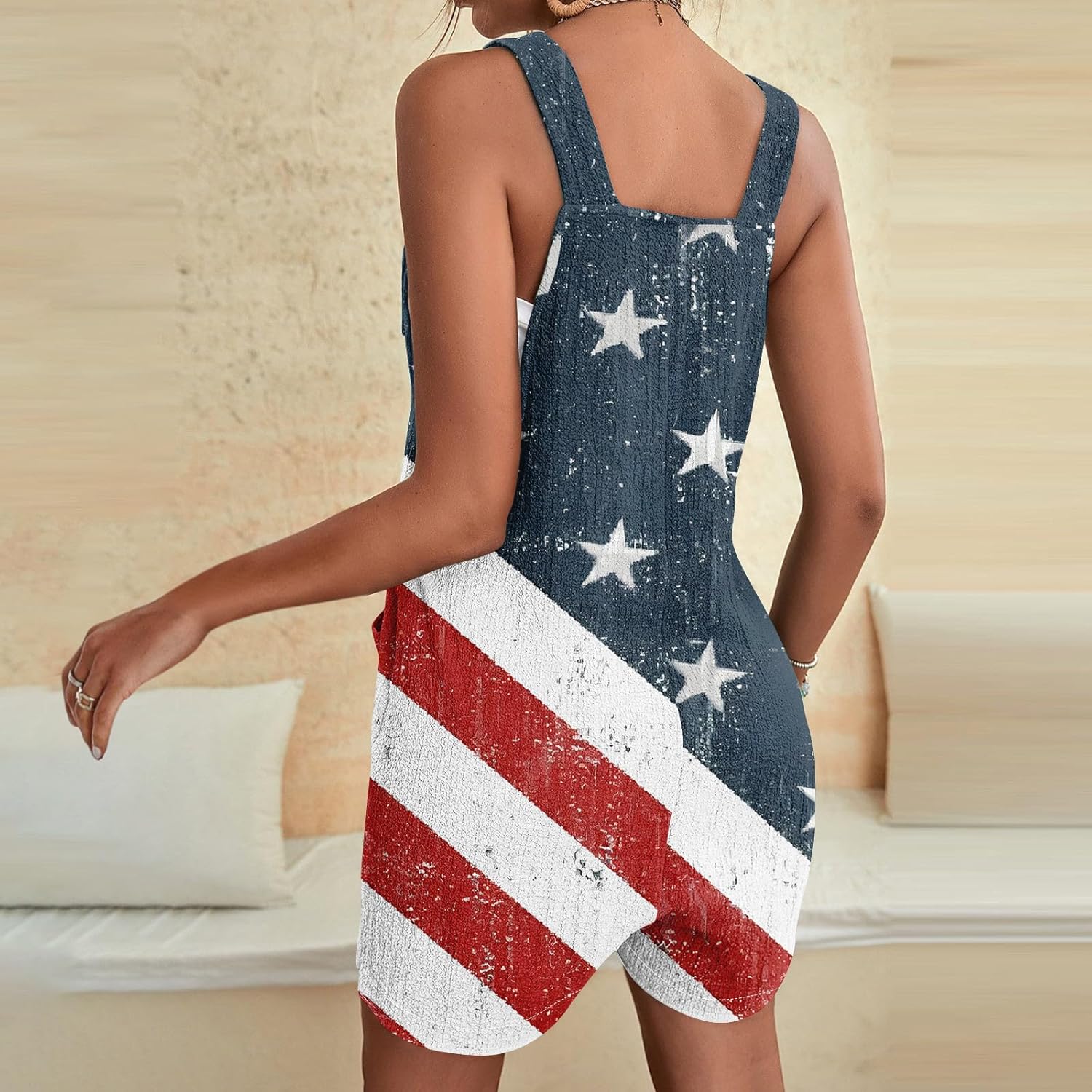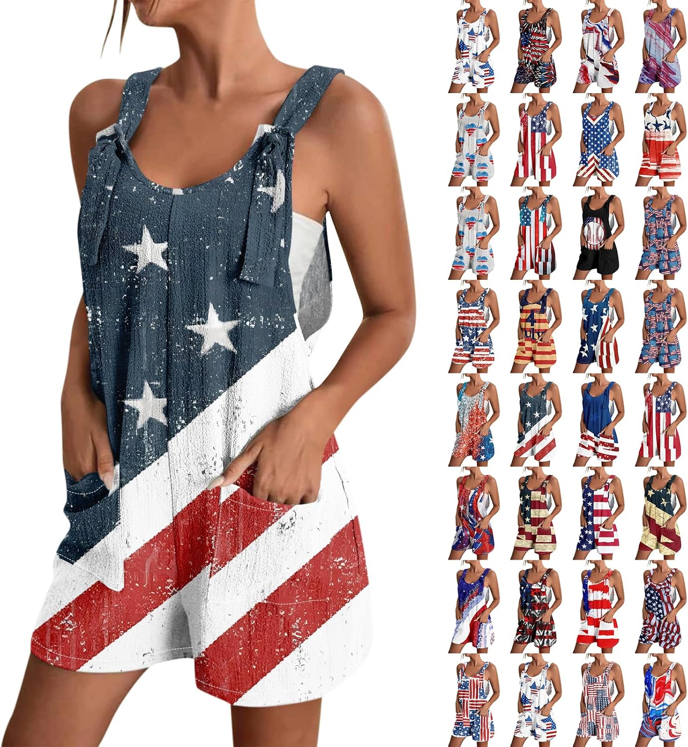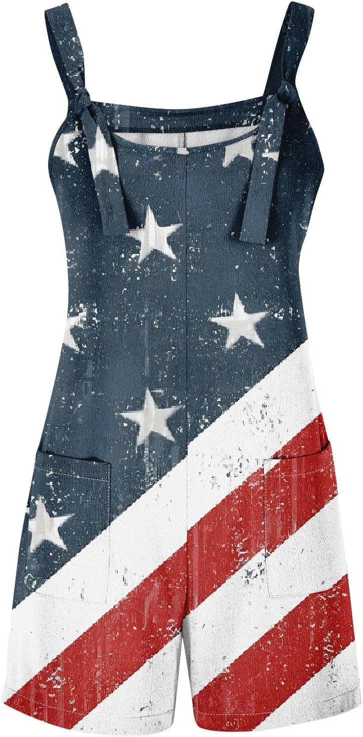 American Flag Overalls Women Trendy Loose Fit Comfy Plus Size Festival Outfits with Pockets